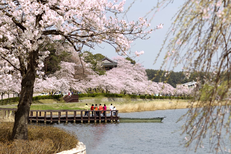 The park surrounding Gyeongpodae bursts into color in spring, with cherry blossoms and camellias painting the paths in pink and red. Families and couples wander beneath the petals, capturing memories in photos and laughter. Every step along the trail feels unhurried, as though time itself slows down here.