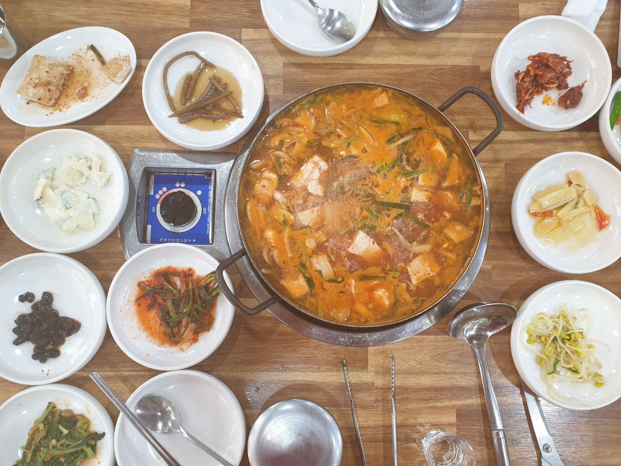 부뚜막 두부마을 낙지두부전골과 반찬들. ⓒ click your dream