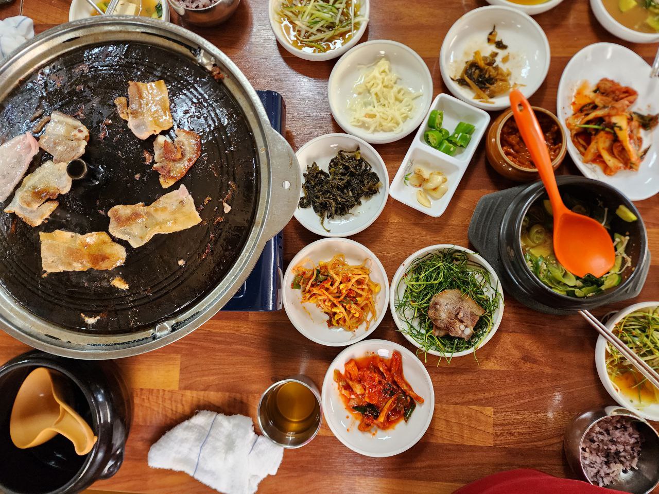 천강돌솥밥 반찬과 대패삼겹살 돌구이 ⓒ click your dream