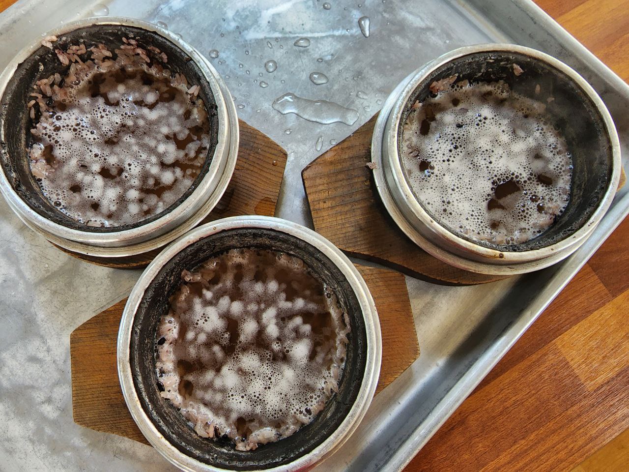 After a while, the smell of rice comes out and the hot pot rice comes out. It is topped with sticky beans, chestnuts, jujubes, and various grains, making you feel healthy just by looking at it. After you put the rice in the air, you can also enjoy eating it by pouring warm water into the remaining nurungji. The crispy pressed nurungji was a nostalgic taste that all children and adults would like.