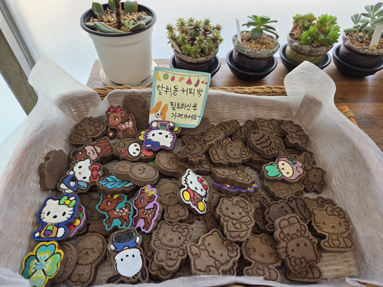 문을 열고 들어서자마자 ‘어서 와요’라고 말하는 듯한 따뜻한 내부 공기와 사장님의 밝은 인사가 반겨줍니다. 특히 눈에 띈 건 계산대 옆에 준비된 탈취용 커피박. 귀여운 캐릭터 모양의 커피박이 손님들이 가져갈 수 있도록 준비되어 있었는데요, 단순히 맛있는 음식을 제공하는 것을 넘어 환경까지 생각하는 가게의 배려가 느껴졌습니다. 작은 디테일 하나하나에 정성이 묻어나는 식당이었죠.