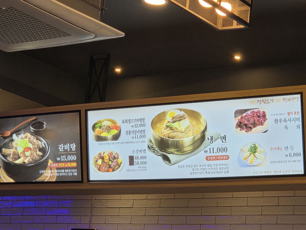 이곳은 갈비탕 외에도 냉면(11,000원), 유채생고기비빔밥(12,000원), 소갈비찜(48,000~58,000원), 파불고기(17,000원/2인 이상) 등 다양한 한식 메뉴들을 제공하고 있었습니다. 특히 파불고기의 경우, 신선한 파채와 버섯, 양념된 소고기를 육수에 끓여먹는 스타일이라 또 다른 맛의 즐거움을 선사한다고 하니 다음엔 꼭 도전해보고 싶네요.